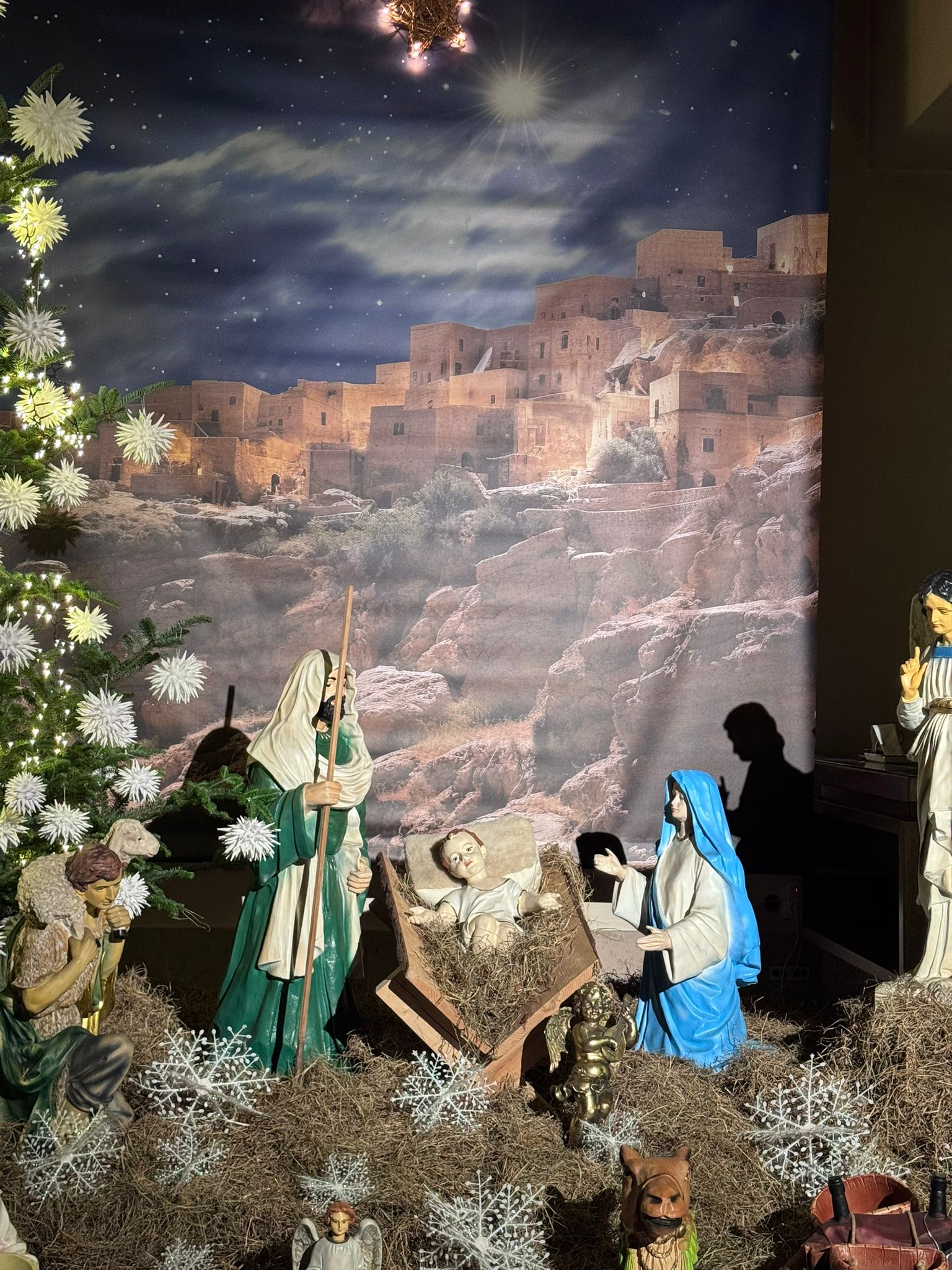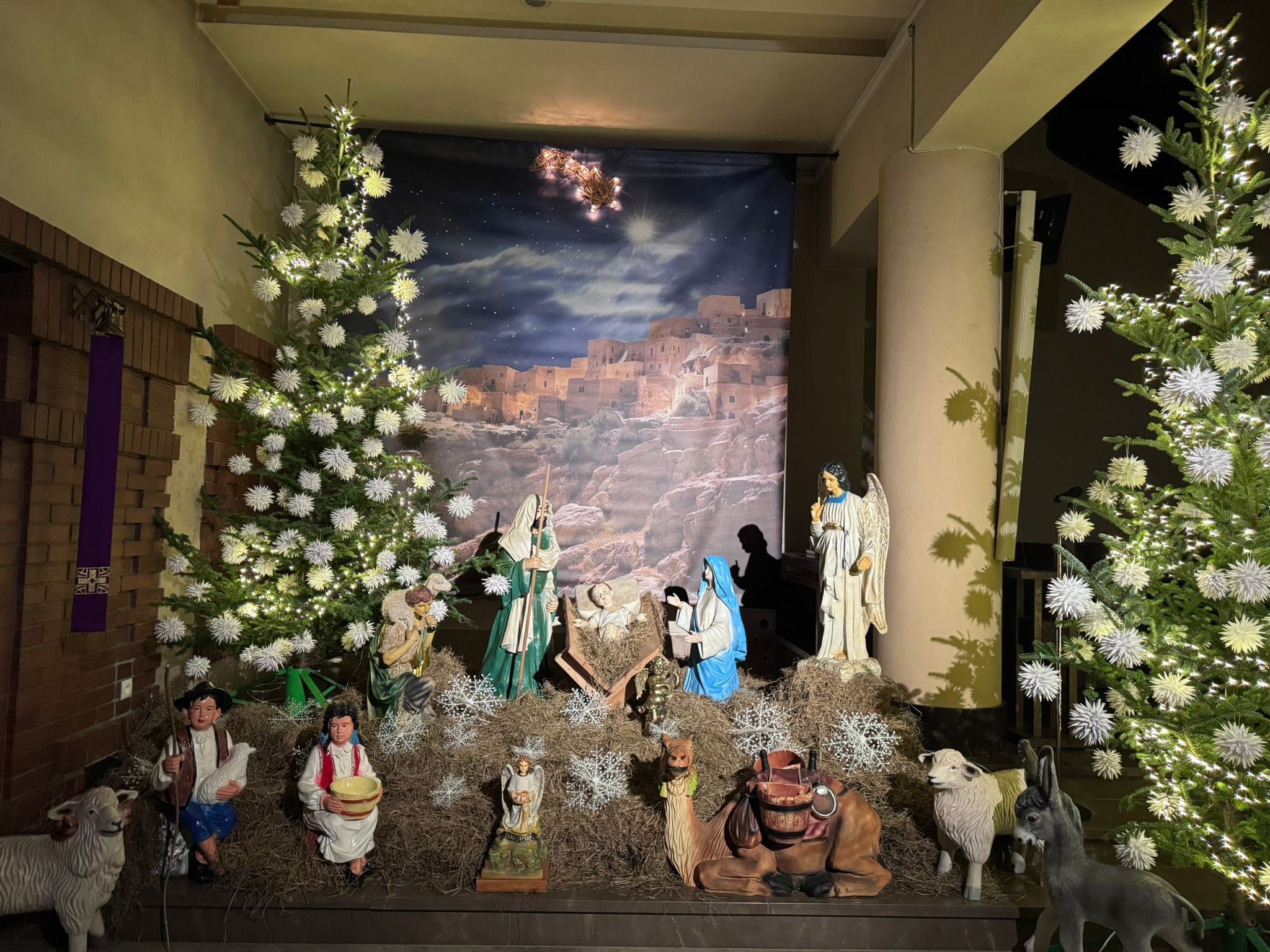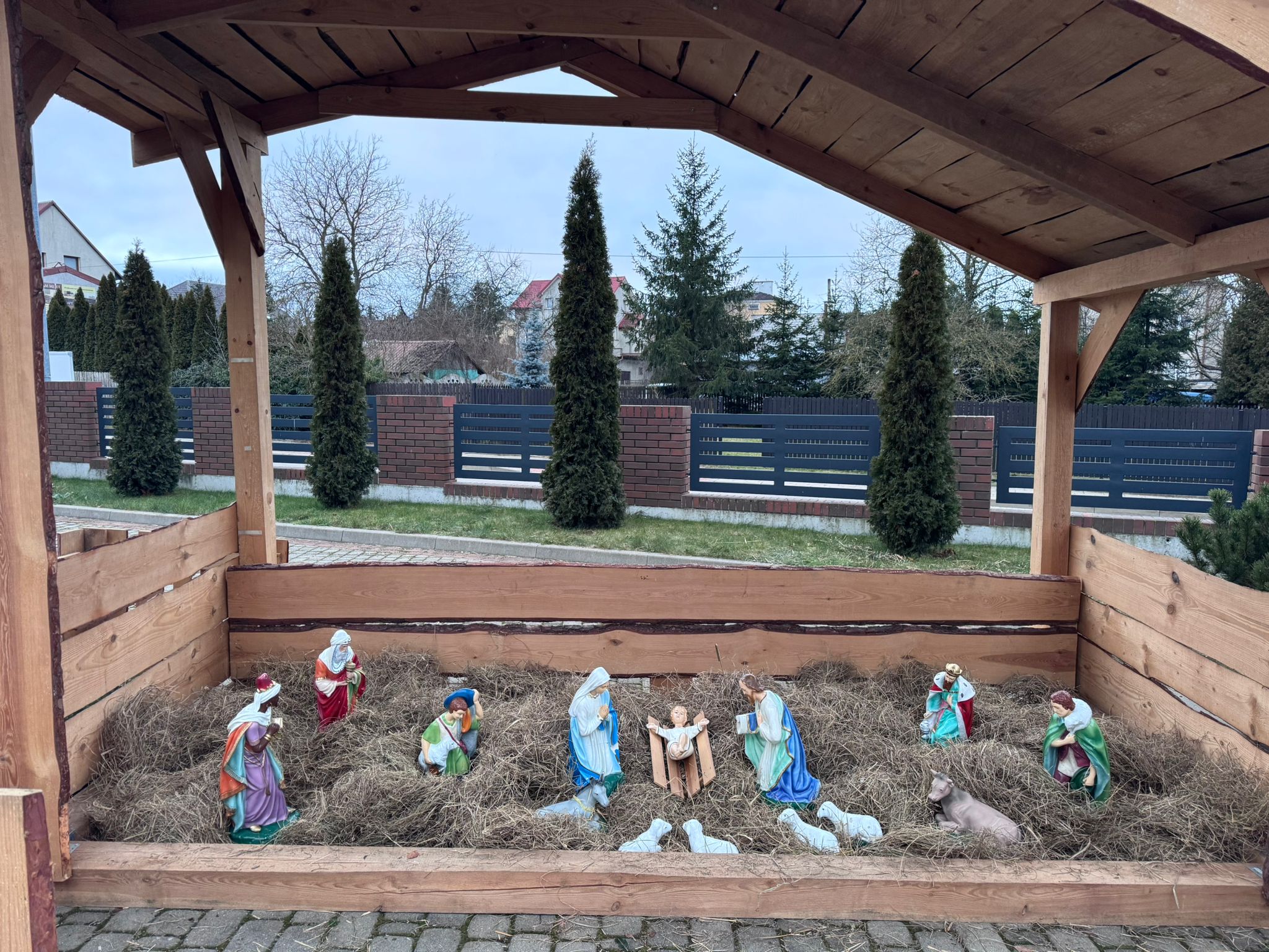 25.12.26 Kolędnicy przed kościołem i żłóbek w kościele i na placu przy krzyżu